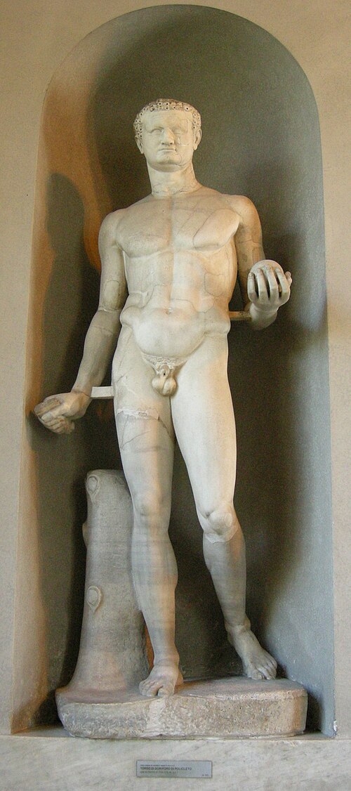 They even made a statue of him modelled on Polykleitos’ Doryphoros (79-81 c.e.), which is in the Vatican Museum. As can be seen in the statue, a pope didn’t tolerate penises and ordered all the statues in the Church’s custody to be “castrated”.